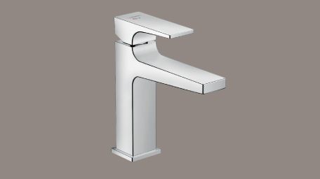 クローム仕上げのシャープなデザインが美しいドイツ・ハンスグローエ製水栓を採用。洗面化粧台を一層引き立てます。