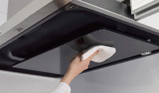 整流板からグリスフィルターまで油汚れに強く、汚れを取り除きやすいホーロー素材を採用。グリスフィルターは食洗機にも対応しお掃除を楽ラクに。