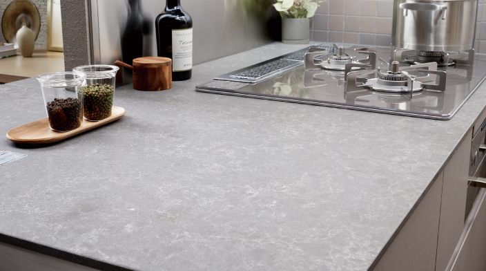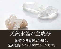 天然水晶を主成分とする高級人造石「フィオレストーン」をカウンタートップに採用。天然石の美しい風合いに、御影石よりも硬い硬度を備え、耐久性・耐熱性・メンテナンス性に優れています。